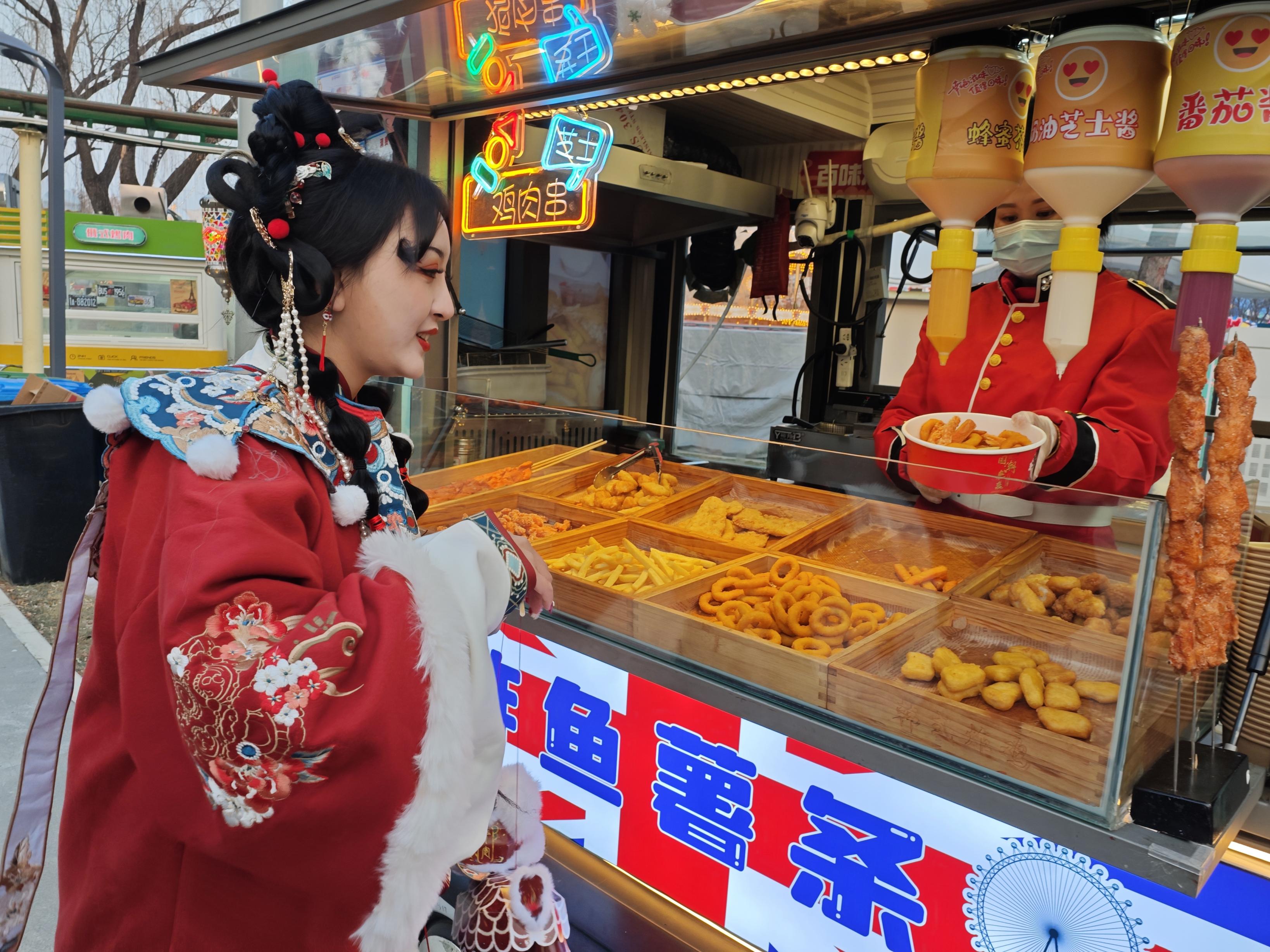 骑士广场中华好意思食区,特质京味茶肆再现艺东说念主现场叫卖场景。音乐大路的东南亚小吃,西园公主花圃欧班小站有列国经典西法小吃餐点,双趣广场20辆餐车在春节时间聚集展示宇宙五洲多样小吃,多种遴荐供旅客选购。