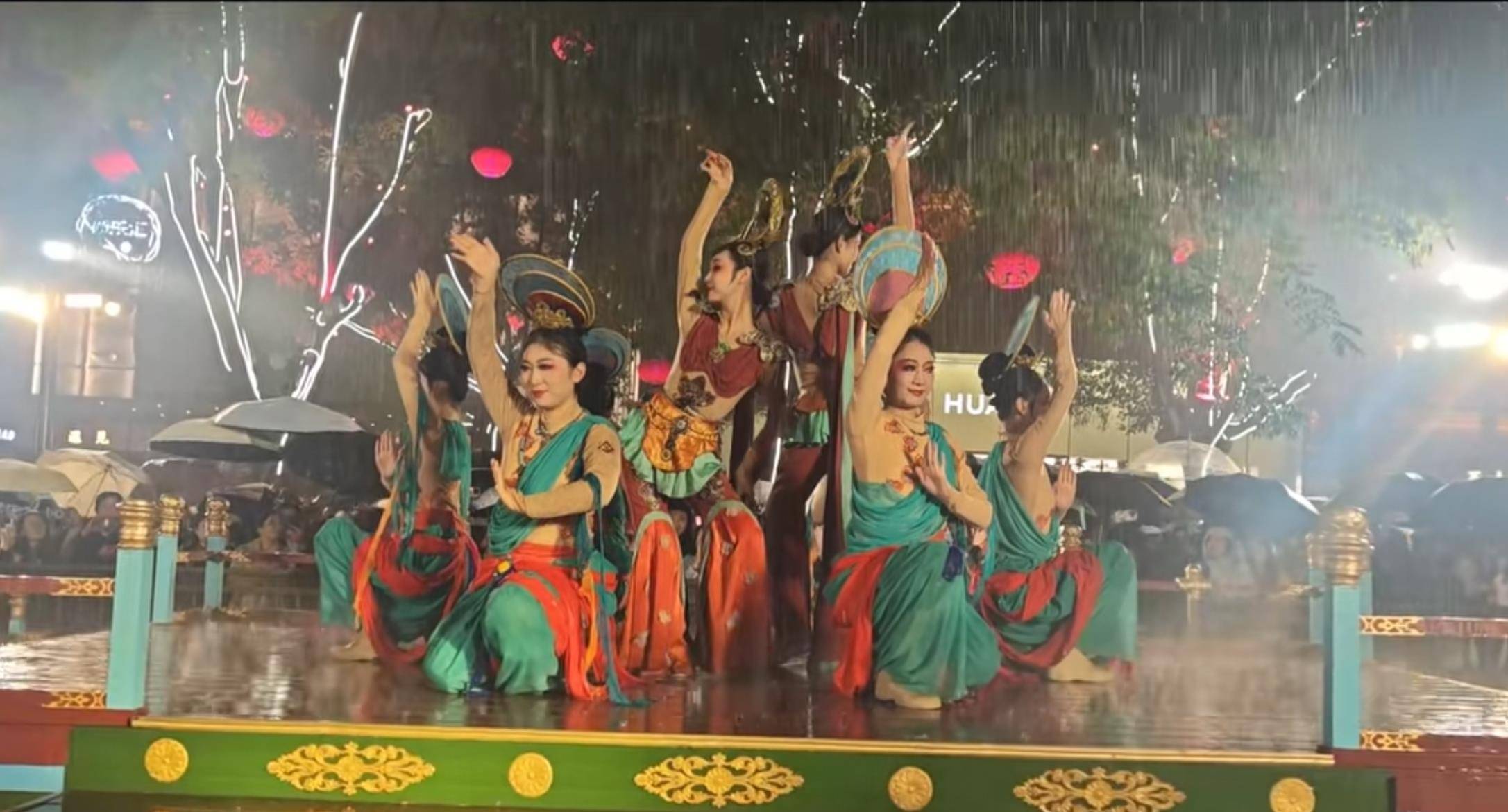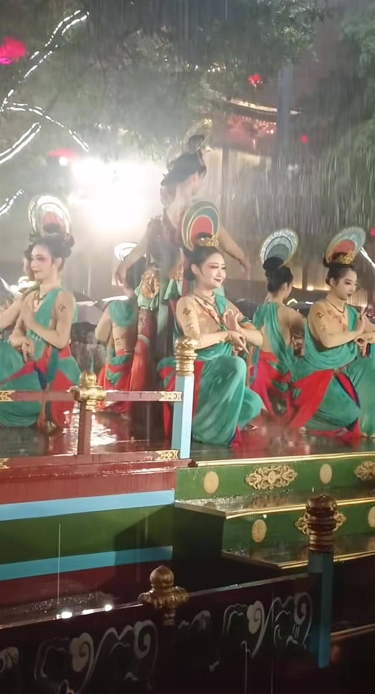 10月14日晚,陕西西安突降大雨,不少网友发布视频称,大唐不夜城正在饰演的跳舞节目《十部伎·敦煌绮梦》并未停演,8位女演员在雨中浅笑饰演,现场不雅众也迟迟未散,沿途饱读掌喝彩。
