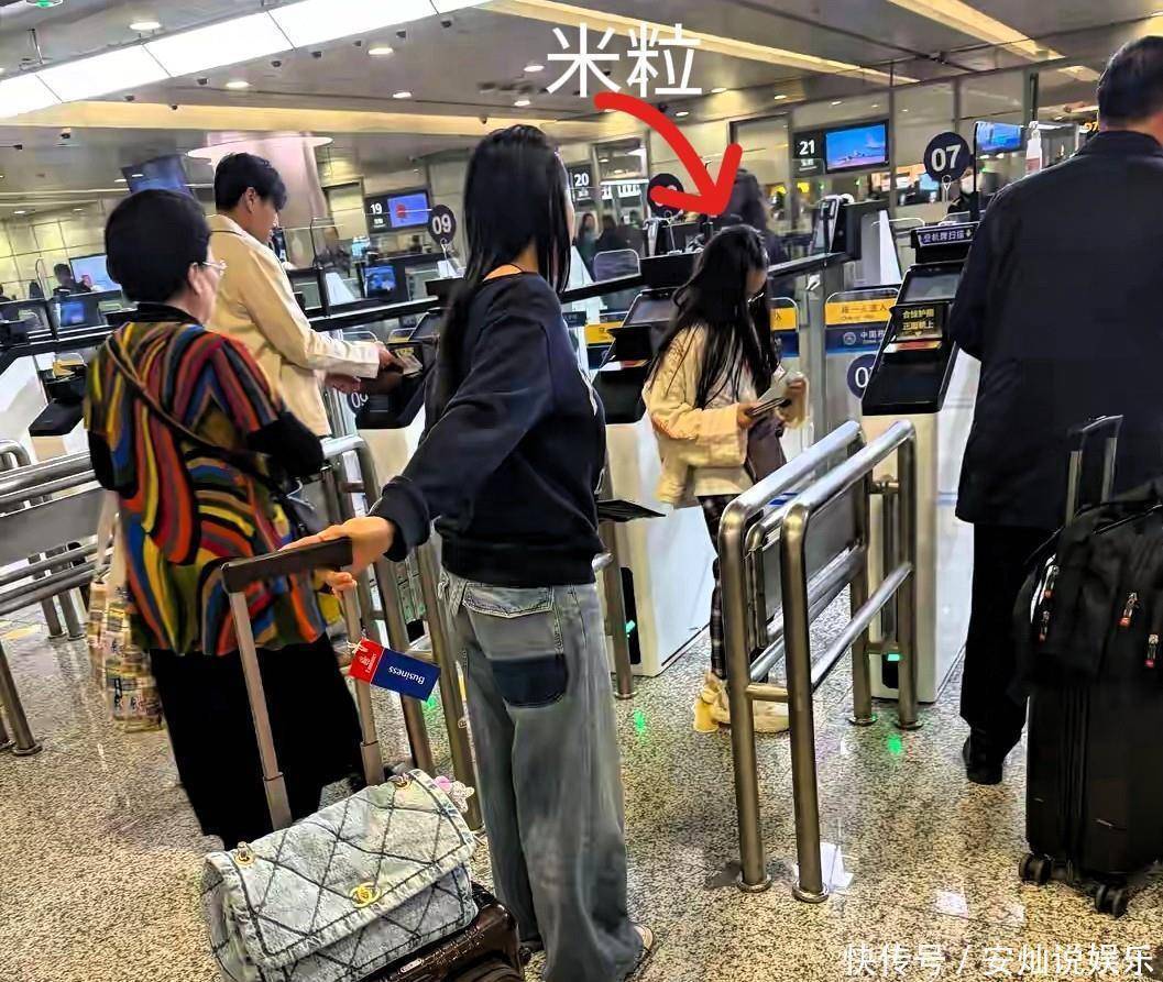 本日米粒披着长发身穿白色外衣还戴着眼镜,个头已到爸爸的肩膀,气质爱静跟姆妈伊能静很像。机场过安检机时她我方翻找证件,尽头乖巧,一看等于很安祥的女孩。