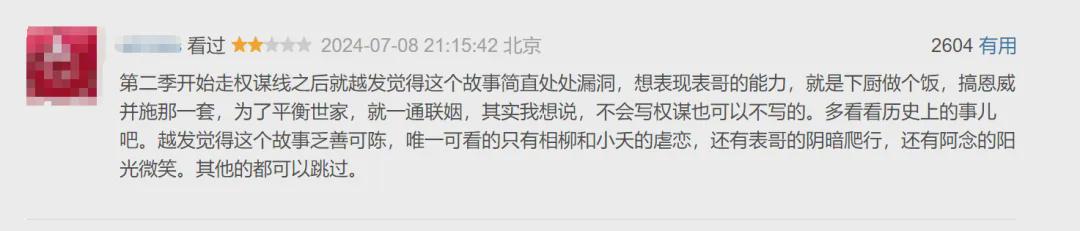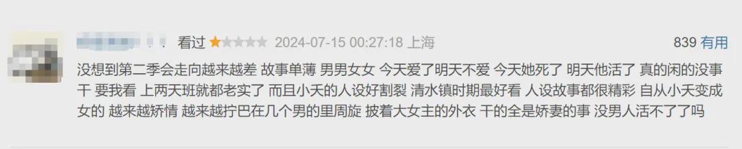 效力到了第二季,全员东说念主设坍塌,而且爽点没了,径直开虐。