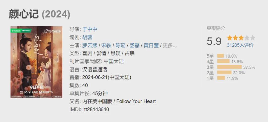 就这样豆瓣评分竟然有6.3分,比隔邻《颜心记》还要高,就更离谱。