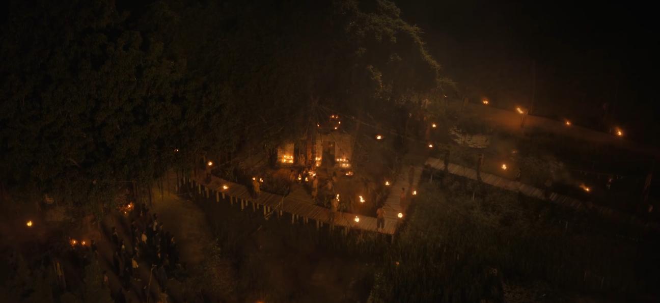 俯视昔时,摇曳的烛火照亮夜色中的墟落。