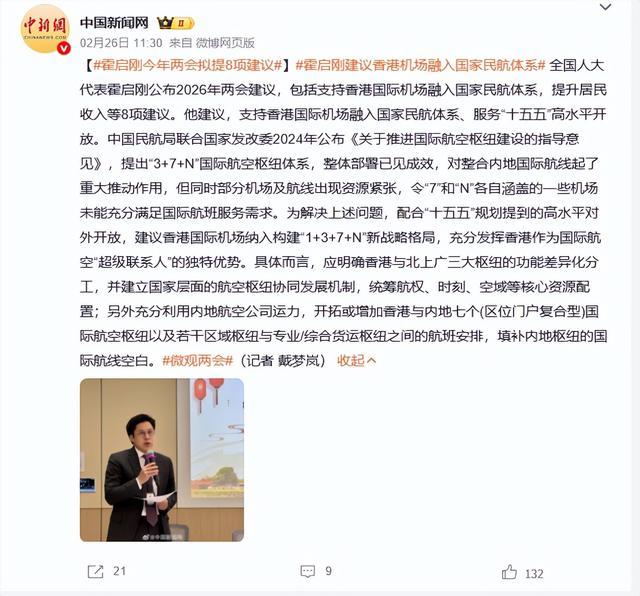 包括守旧香港国际机场融入国度民航体系,擢升住户收入等8项建议。