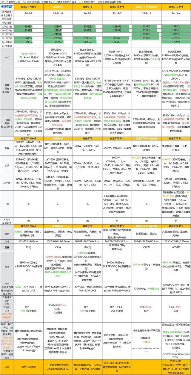 支撑使用2月13日国补价,真我GT7Pro竞速版,一加Ace 5 Pro、iQOO Neo10 Pro、真我GT7Pro、REDMI K80 Pro对比↓